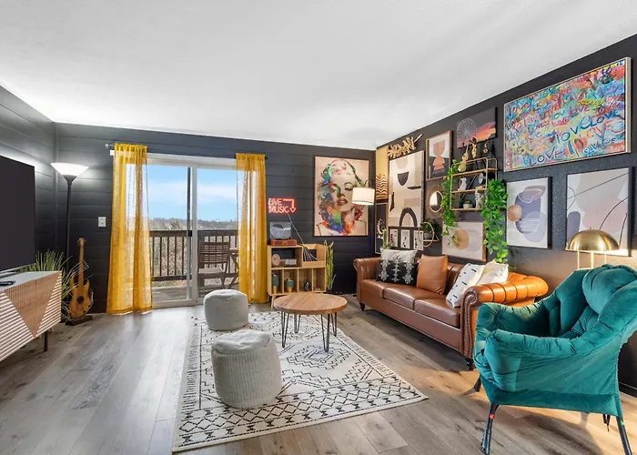 Marilyns Modern Hideaway A One Of A Kind Find Villa Branson is located in close proximity to Friendly Baptist Church and provides a swimming pool, ensuring a relaxing stay. The holiday home includes a car park and a patio with views of the mountain.